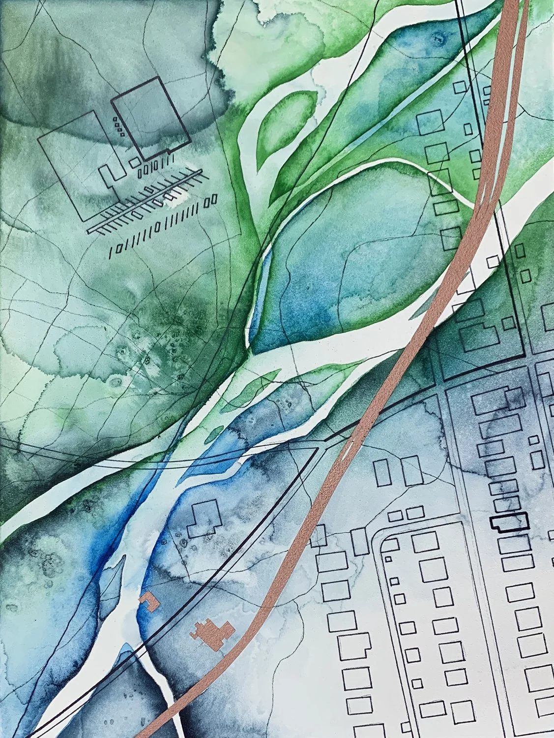 Mixed media on panel, 9” x 12”